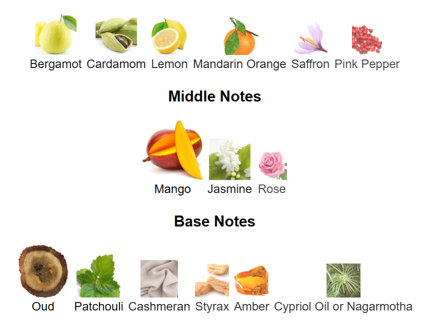 Mango Oud – Swiss Arabian es una fragancia frutal-oriental cálida y sofisticada que combina la jugosidad del mango con la profundidad del oud, creando un aroma dulce, exótico y elegante, ideal para la noche o ocasiones especiales.